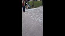 Der Wahlkampfauftritt des Thüringer AfD-Chefs Björn Höcke in der Wittumhalle in Reutlingen stößt auf massiven Widerstand - dieser zeigt sich auch in Kreidezeichnungen.