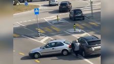 Kuriose Szenen in der Schweiz: Ein Pkw-Fahrer rammt ein anderes Auto und fährt dann einfach weg - direkt in den Straßengraben.