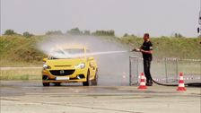 "Team GRIP" gegen "Team Facebook" müssen einen Geschicklichkeitsparcours absolvieren. Hier muss Moderator Matthias Malmedie sein Fahrzeug beherrschen und Reaktionsvermögen zeigen. Im Opel Corsa OPC legt er vor. Und zitiert eines der berühmtesten Erotikfilm-Zitate.