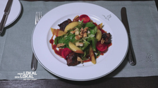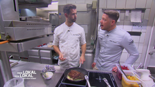 Robin Pietsch staunt über die 80-qm-Küche im "Zum Wattkorn". Mit Chef Tim zaubert er regionales Rehfleisch mit Pommes Dauphine. Das Highlight: Der Rehrücken wird vor dem Gast tranchiert – ein Service, der das Gericht zelebriert.
