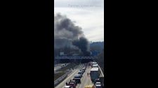 Rauchwolken über der A81 und kilometerlange Staus: Im Engelbergtunnel bei Leonberg in Baden-Württemberg brennt ein Lastwagen-Anhänger.