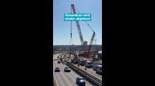 Der XXL-Kran hat seine Arbeit erledigt. Jetzt wird er wieder abtransportiert.