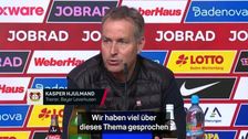 Werkself-Coach Kasper Hjulmand zeigt sich nach dem späten 3:3 gegen Freiburg enttäuscht, fordert aber weiter ein dominantes Auftreten seiner Leverkusener.