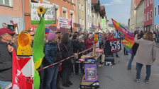 Die Eröffnung des als „Demokratiezentrum“ bezeichnete AfD-Wahlkreisbüro in Traunstein sorgte am Samstag für einen Ansturm von Gegendemonstranten.