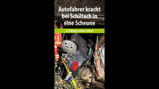 Zu einem spektakulären Unfall kam es am Montagabend kurz vor 21 Uhr in Hinterlehengericht bei Schiltach. Ein Autofahrer ist von der B 462 abgekommen und in eine Scheune gekracht. Beim Unfall wurde er schwer verletzt. ✂️: Meene 📹: Klemm