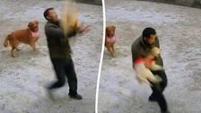 Welpe entgeht dem Tod, nachdem ein Mann ihn nach einem Sturz aus dem zweiten Stock aufgefangen hat.