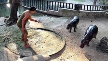 Hautnah dran: Mann schleicht sich in Gehege von Internet-Nilpferd Moo Deng
