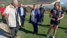 König Charles hat einen Küstenwanderweg eröffnet und ist dabei gleich selbst ein Stück darauf gewandert - zur großen Überraschung von Radfahrer, Joggern und anderen Spaziergängern.