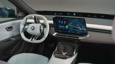 Hohen Langstreckenkomfort, sicheren Seitenhalt und vielfältige Einstellmöglichkeiten bieten die neukonstruierten Sitze des neuen BMW iX3. Weit nach unten reichende Sitzkissen und der weitgehende Verzicht auf Kunststoffblenden sorgen für ein elegantes Erscheinungsbild. Mit ihren auffälligen Konturen tragen auch die Kopfstützen zum progressiven Stil des Interieur-Designs bei. Die Bedienfelder für die elektrisch betriebene Sitzeinstellung sind in die Türverkleidungen integriert. Die Fondsitzbank bietet eine durchgehende Sitzfläche, die wie ein Sofa wirkt. Sowohl vorn als auch im Fond verfügt der neue BMW iX3 über elektrisch betriebene Türöffner, deren Betätigungshebel direkt hinter den Fensterheber-Tasten an den Zuziehgriffen angeordnet sind. In einem vollkommen neuen Design präsentiert sich auch die Mittelkonsole zwischen Fahrer- und Beifahrersitz einschließlich der dort positionierten Ablagen und Bedienelemente. Das Staufach unter der Armauflage beherbergt auch einen 12-Volt-Stromanschluss. Im vorderen Bereich der Mittelkonsole befinden sich eine Ablagefläche mit induktiver Ladefunktion, zwei USB-C-Anschlüssen und Platz für ein zweites Mobiltelefone sowie zwei Cupholder, die von einem beleuchteten Zierelement in Dreiecksform getrennt werden. Dahinter sind der Fahrstufenschalter, eine Bedienwalze zur Regulierung der Audio-Lautstärke sowie die physischen Tasten für Parkbremse, Heckscheibenheizung, Frontscheiben- Enteisung und Warnblinkanlage angeordnet. Unterhalb der Mittelkonsole bietet eine indirekt beleuchtete Ablagefläche zusätzlichen Stauraum.