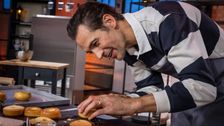 Promi-Hobbybäcker René Casselly trägt die rote Schürze mit großem Stolz und betont das immer wieder. Selbstbewusst stichelt er gegen seine Mitstreiter:innen - schließlich will er die Konkurrenz einschüchtern. Geht seine Strategie am Ende auf?