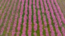 Tausende Besucher und Besucherinnen bewundern das beeindruckende "rosa Meer" der Pfirsichblüten in Veria in Griechenland.
