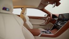Im Interieur des BMW Concept Speedtop wurde auf jedes noch so kleine Detail geachtet. Handwerkliche Details im traditionellen Budapester Stil akzentuieren die Lederflächen und machen das Manufaktur-Niveau sichtbar. Das zweifarbige Farb- und Materialkonzept schafft eine Verbindung zwischen Exterieur und Interieur. Der funkelnde Braunton der Außenlackierung „Floating Sunstone Maroon“ wird ins Innere übertragen. Hier harmoniert die braune „Sundown Maroon“ Welt mit dem hellen „Moonstone White“ der Sitze. Die Zweifarbigkeit der Belederung teilt somit sichtbar den dynamischen und funktionalen Bereich des Interieurs. Der markante Dachsteg des Exterieurs spiegelt sich als Lichtfuge im zweifarbig belederten Dachhimmel wider und sorgt für eine stimmungsvolle, indirekte Beleuchtung. Auch der Kofferraum ist beledert und mit einer Lochung im Budapester Stil veredelt. Eine Lichtfuge beleuchtet den Gepäckraum, der dank einer Zweiteilung auch größere Gepäckstücke für mehrtägige Ausfahrten verstauen kann. Die aufwändige Handwerkskunst im Exterieur und Interieur wurde mit der Expertise der Manufaktur Werkstatt im BMW Group Werk Dingolfing realisiert.