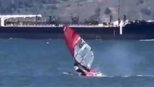 In der Bucht von San Francisco ist ein Surfer mit einem plötzlich auftauchenden Wal zusammengestoßen.