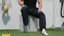 Physiotherapeut Entoni Kupe zeigt Übungen, um der Sturzgefahr vorzubeugen.