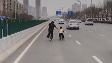 Ein Kind auf einem Laufrad überquerte am 21. März 2026 in Shaanxi, China, vier Fahrspuren, woraufhin ein Autofahrer eine Notbremsung einleiten musste. Aufnahmen einer Bordkamerazeigen, wie der heldenhafte Fahrer seine Warnblinkanlage einschaltet, bevor er auf die stark befahrene Straße rennt, um das Kind zu retten. Ein Familienmitglied empfing das Kind mit offenen Armen bei der Wiedervereinigung.