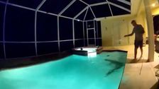 Tierischer Einsatz für die Polizei in Tampa, Florida: Ein Alligator hatte sich dort in einen privaten Swimmingpool verirrt.
