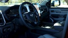 Das aktualisierte Modell ist der technologisch fortschrittlichste Ram 1500 und bietet modernste Funktionen wie beispielsweise das Uconnect 5-System. Das System wird durch eine neue elektrische Architektur verbessert und bietet fünfmal schnellere Betriebsgeschwindigkeiten als die vorherige Generation mit mehr Speicherplatz und blitzschneller Reaktion auf Touchscreen-Eingaben in nur 0,05 Sekunden. Der neue Ram 1500 ist mit über 50 Zoll kombinierter digitaler Anzeigen und über 24 Zoll kombinierter Touchscreen-Displays der beste seiner Klasse. Er ist entweder mit einem verbesserten 12-Zoll- oder einem neuen 14,5-Zoll-Touchscreen-Display mit Split-Screen-Fähigkeit zur gleichzeitigen Bedienung von zwei Anwendungen erhältlich. Beide Touchscreens arbeiten mit der Full Array Local Dimming-Technologie, die ein höheres Kontrastverhältnis als ein herkömmlicher Bildschirm mit Randbeleuchtung ermöglicht. Der 10,25-Zoll-Bildschirm für den Beifahrer ist eine Neuheit in diesem Segment und bietet Funktionen für den Beifahrer, die Unterhaltung und den Blick auf die Außenkameras des Fahrzeugs, während das digitale 12,3-Zoll-Kombiinstrument fast zwei Dutzend Menüs anzeigt. Darüber hinaus ist ein volldigitaler Rückspiegel erhältlich, der Echtzeitbilder von einer nach hinten gerichteten Kamera liefert, ohne dass die D-Säulen oder die Rücksitze im Weg sind. Durch Umlegen des Schalters an der Unterseite des Spiegels wird dieser wieder zu einem herkömmlich reflektierenden Spiegel.