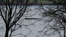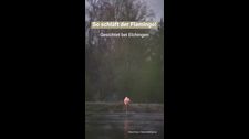 Der Flamingo in der Nähe von Ulm ruht sich an der Donau in Elchingen aus.