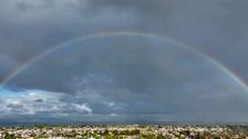 In Foster City im US-Bundesstaat Kalifornien ist am Sonntag, dem 12. April, während regnerischen Wetters ein Regenbogen über der Bucht von San Francisco zu sehen gewesen. Die Aufnahmen wurden aus der Luft mit einer Drohne gemacht und zeigen den farbigen Bogen aus verschiedenen Perspektiven, während sich das Wetter über dem Wasser und den Uferbereichen wechselhaft präsentierte. Der Regenbogen spannte sich über die San Francisco Bay, während in der Region Niederschläge fielen. In dem Material sind mehrere Drohnen-Einstellungen zu sehen, die den Himmel und die Bucht über Foster City erfassen und den Kontrast der Farben vor dem grauen, von Regenwolken geprägten Hintergrund hervorheben. Die Sequenz besteht aus unterschiedlichen Luftaufnahmen, die den Regenbogen über der Bucht dokumentieren. Gedreht wurde das Material in Foster City; das Datum der Aufnahmen ist mit dem 12. April 2026 angegeben. Das Video zeigt die Erscheinung des Regenbogens über dem Gewässer im Zusammenhang mit dem anhaltenden Regenwetter.