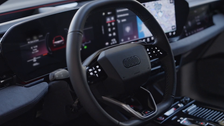 Kundinnen und Kunden erleben mit der Elektronikarchitektur die Digitalisierung im Fahrzeug unmittelbarer als je zuvor. So erhält die Audi A6 e-tron Baureihe auf Basis der Architektur E3 1.2 ein vollvernetztes digitales Interieur. Oberhalb des sogenannten Softwraps prägt die Digital Stage mit dem Audi MMI Panoramadisplay und dem MMI Beifahrerdisplay das Interieur. Die klar gruppierten Displays sind passgenau in das Designkonzept integriert und verleihen dem Innenraum ein großzügiges und luftiges Raumgefühl. Das schlanke, freistehende Audi MMI Panoramadisplay ist im Curved Design und in OLED-Technologie ausgeführt und besteht aus dem 11,9 Zoll großen Audi virtual cockpit und dem 14,5 Zoll großen MMI Touchdisplay. Der Fahrergreifraum ist als Kurve gestaltet und das Display mit seiner gebogenen Form auf die fahrende Person ausgerichtet. Zudem erinnert das Curved Display in seiner Form an den für Audi typischen Singleframe. Eine spezielle Ambiente-Beleuchtung lässt das Curved Display bei Nacht regelrecht schweben.