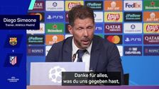 Vor dem Champions-League-Viertelfinale gegen den FC Barcelona richtete Diego Simeone emotionale Worte an Antoine Griezmann. Der Franzose wechselt nach der Saison in die MLS zu Orlando City.