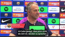 Vor dem Stadtderby gegen Espanyol weicht Barça-Trainer Hansi Flick Fragen zur Zukunft von Robert Lewandowski aus. Die Kaderplanung für die nächste Saison sei die Aufgabe von Sportdirektor Deco.