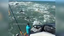 Auf einem Angelausflug gerät ein Jetskifahrer in eine Gruppe von Haien. Er beschreibt die Erfahrung als National-Geographic-Moment.