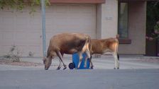 Tierischer Großeinsatz in Phoenix im US-Bundesstaat Arizona: Zwei entlaufene Kühe hielten die Polizei über eine Stunde auf Trab. Beamte sperrten Straßen mit Streifenwagen ab, bevor die Tiere mit dem Lasso eingefangen wurden.