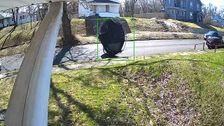Kuriose Szene während eines Sturms in Marion im US-Bundesstaat Indiana: Ein Trampolin wurde von den starken Böen mitgerissen und rollte eine Straße entlang – direkt auf einem geparkten Auto kam es zum Stehen.