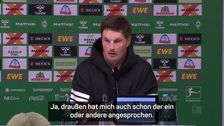 Die beiden Trainer Daniel Thioune und Merlin Polzin äußern sich nach dem hitzigen Nord-Derby zwischen Werder Bremen und dem HSV zu den Fan-Ausschreitungen nach dem Schlusspfiff.