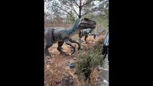 China: Chinesischer Besucher eingeklemmt, nachdem Dinosaurier-Modell auf seinen Kopf schnappt