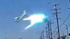 Ein Kleinflugzeug kollidiert mit einem Hochspannungsmasten und geht zu Boden. Eine Dash-Cam filmte den Unfall.