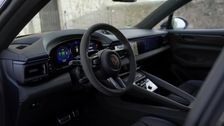 Für einen noch sportlicheren Look ist der Macan GTS serienmäßig mit erweiterten Umfängen in sportlichem Race-Tex und mit Elementen in schwarzem Glattleder ausgestattet. Race-Tex setzt Akzente am beheizbaren Multifunktions-GT-Sportlenkrad, den Armauflagen der Mittelkonsole und Türen sowie am Steg der Schalttafel. Auch die Sitzmittelbahnen der Adaptiven 18-Wege-Sportsitze sind mit Race-Tex bezogen. Bei den Sitzwangen und Kopfstützen kommt Glattleder zum Einsatz. Neu beim Macan Electric ist die Möglichkeit, mit dem optionalen Interieur-Paket GTS eine farbliche Korrespondenz zwischen Exterieur und Interieur zu schaffen. Passend zu den entsprechenden Exterieurlacken gibt es das Interieur-Paket GTS wahlweise in karminrot, schiefergrau neo und luganoblau. Die Ziernähte an den Sitzen, am Lenkrad, den Türtafeln und dem Oberteil der Schalttafel sind dann in der jeweiligen Farbe ausgeführt, ebenso die Sicherheitsgurte und die „GTS“-Schriftzüge auf den Sitzen. Zudem erhält das Lenkrad eine Plakette mit farbigem „GTS“-Schriftzug. Wer sich für das Interieur-Paket GTS entscheidet, erhält automatisch das Interieur-Paket Carbon. Dadurch sind die Dekoreinleger im Lenkrad, in der Zierleiste der Schalttafel sowie den Türtafeln vorn und hinten in Carbon ausgeführt. Der GTS-Stil setzt sich im digitalen Anzeigenbereich fort: Die tatsächliche Außenfarbe des Kundenautos wird für die 3D-Visualisierung des Fahrzeugs im Zentral-Display herangezogen. Darüber hinaus trägt das Kombiinstrument einen „GTS“-Schriftzug. Viele Funktionen des serienmäßigen Sport-Chrono-Pakets lassen sich über die entsprechende App im Zentral-Display bedienen. Dazu gehören etwa die Aufzeichnung von Rundenzeiten und Telemetriedaten, das Hinzufügen neuer Strecken sowie die Sektor- und Rundenanalyse.