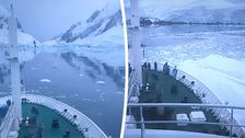 Beeindruckendes Manöver in der Antarktis: Am 27. März blockierte ein Eisberg den Lemaire-Kanal und versperrte dem Expeditionsschiff „Hondius“ den Weg. Der Kapitän spielte sein ganzes Können aus.