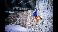 Der Outdoor-Fotograf Rainer Eder hat sich mit der Schweizer Bergsportmarke Mammut zusammengetan, um ein eindrucksvolles visuelles Projekt zu realisieren, das zeigt, wie echte sportliche Entschlossenheit selbst unter den ungewöhnlichsten Bedingungen aussieht. Eine prägnante Szene zeigt den Schweizer Bergsteiger Jonas Schild, der an einem Berg aus Altpapier in voller Kletterausrüstung, mit Eispickel, klettert.