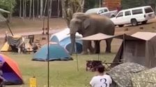 Wilder Elefant erschreckt Camper, als er durch die Zelte wandert