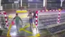 Bei einem heftigen Sturm im Nordosten Thailands stürzte das Dach eines Bahnsteigs ein und die Fahrgäste flohen in Panik. Überwachungskameras zeigen, wie Pendler sich in Sicherheit bringen, kurz bevor starke Winde das Gebäude zum Einsturz brachten. Es wurden keine Verletzungen gemeldet, und die Behörden haben Warnungen herausgegeben, da schwere Stürme in der Region anhalten.