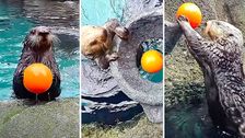 Talent im Wasser: Seeotter dribbeln im Oregon Zoo mit einem Basketball