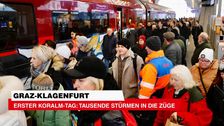 Mehr als 10.000 Fahrgäste waren bereits am ersten Tag auf der neuen Schnellverbindung zwischen Graz und Klagenfurt unterwegs. Mit Tempo 250 ging es durch den 33 Kilometer langen Koralmtunnel! Der Ansturm wird auch in den nächsten Tagen kaum abreißen.