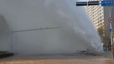 Geysir in der Stadt: Mächtige Wasserfontäne sorgt in China für Überschwemmung