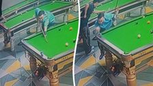 Ein Mann vollbrachte einen unglaublichen Billard-Trickstoß, indem er eine Kugel am Rand des Tisches entlangdrehte, bevor sie in die Tasche fiel. Aufnahmen aus einem Billardraum in Shandong, China, zeigen, wie die Kugel nach dem Stoß mehrere Sekunden lang am Rand kreist. Gerade als es so aussieht, als würde der Ball zum Stillstand kommen, kippt er plötzlich nach innen und fällt sauber in die Tasche, woraufhin der Spieler jubelt.