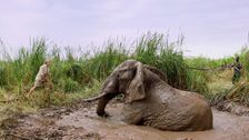 Riesenproblem: Elefant steckt im Schlamm fest