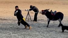 Ein Mann in der chinesischen Provinz Liaoning versuchte, einen Esel über ein Feld zu führen. Doch das sture Tier machte seinem Ruf alle Ehre.