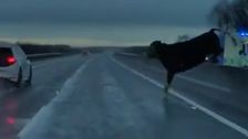 Einen gehörigen Schrecken hat ein Autofahrer in Irland bekommen. Plötzlich springt eine Kuh direkt vor ihm auf die Fahrbahn.