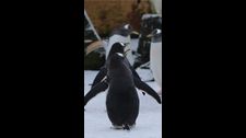 Während viele Menschen in Europa mittlerweile genug Schnee gesehen haben, können die Vögel aus der Antarktis gar nicht genug von der weißen Pracht bekommen.