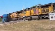 Am Sonntagmorgen ist ein Güterzug in Schwertz, Texas, an einem Bahnübergang in einen Autotransporter gekracht. Warum der Transporter auf den Gleisen stand, ist noch unklar.
