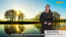 Am Mittwoch zeigt sich das Wetter in Deutschland ruhig und meist freundlich. In den südlichen Regionen hält sich zunächst zäher Nebel, während im Norden einige Wolken durchziehen. Im Tagesverlauf kommt vielerorts die Sonne zum Vorschein, besonders im Osten und Südwesten mit bis zu neun Sonnenstunden. Nur vereinzelt fallen am Nachmittag wenige Tropfen. Die Temperaturen steigen auf bis zu 19 Grad, wo sich der Nebel länger hält, bleiben sie bei 8 bis 10 Grad. Der Wind weht meist schwach aus nördlichen bis östlichen Richtungen. Mehr zum Wetter heute am Mittwoch, den 12. November 2025, erklärt unsere Meteorologin Denise Seiling im Video.