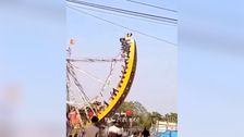 Schwerer Unfall auf einem Jahrmarkt in Indien: Eine große Drachenschaukel voller Schüler sackt plötzlich in sich zusammen.
