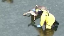 In Colorado wurde die Feuerwehr zu einem Reh gerufen, das nicht mehr alleine von einem zugefrorenen See kam.