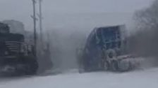 Aufgrund von Schneemassen auf der Strecke steckte ein LKW an einem Bahnübergang fest und wurde von einem durchfahrenen Güterzug erwischt. Verletzt wurde niemand.